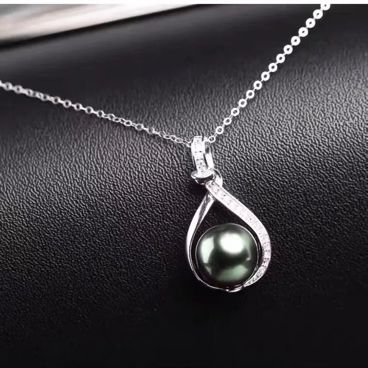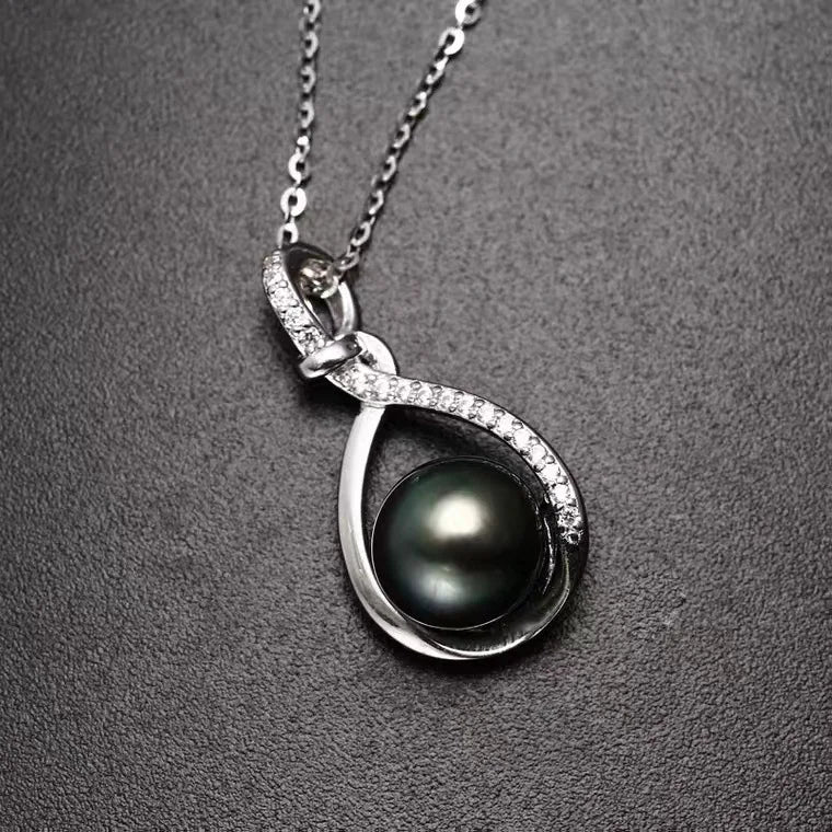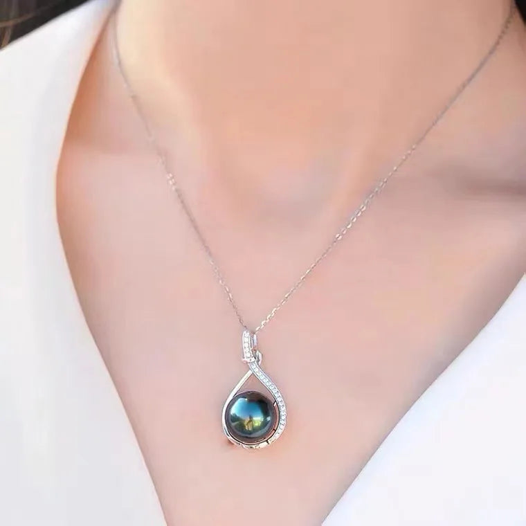 Elegant simulated Tahitian black pearl pendant necklace with diamond accents—a stunning fashion piece perfect for gifting. Crafted from quality resin, this timeless design captures luxury appeal without the premium price tag.
