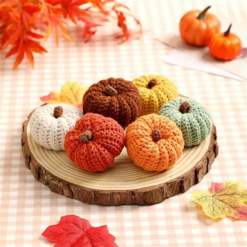 Hand-knitted Simulated Pumpkin Halloween Party Decoration Ornament Wool Pumpkin Props Home Decor Figurines Gifts Crafts