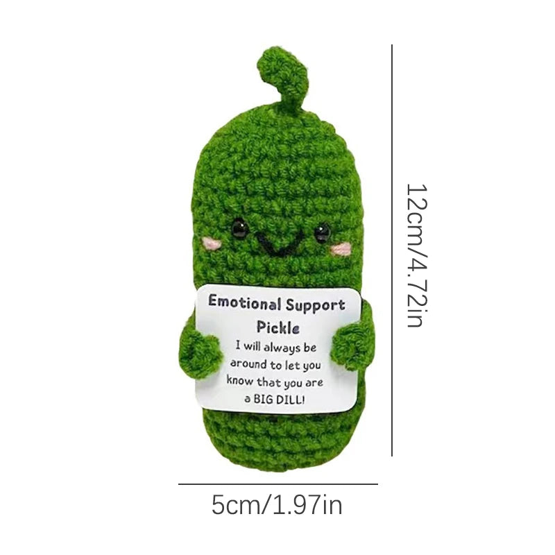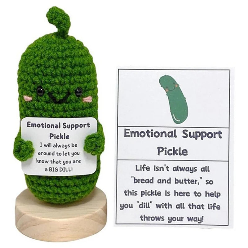 Handmade Emotional Support Pickled Cucumber Gift, Cute Handwoven Ornaments, Handmade Crochet Emotional Support Pickles With Wood