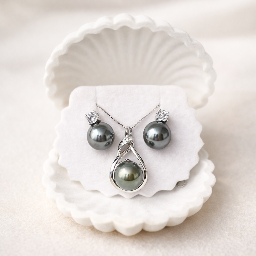 Eternal Luster Set™ — Tahitian Black Pearl Necklace + Earrings