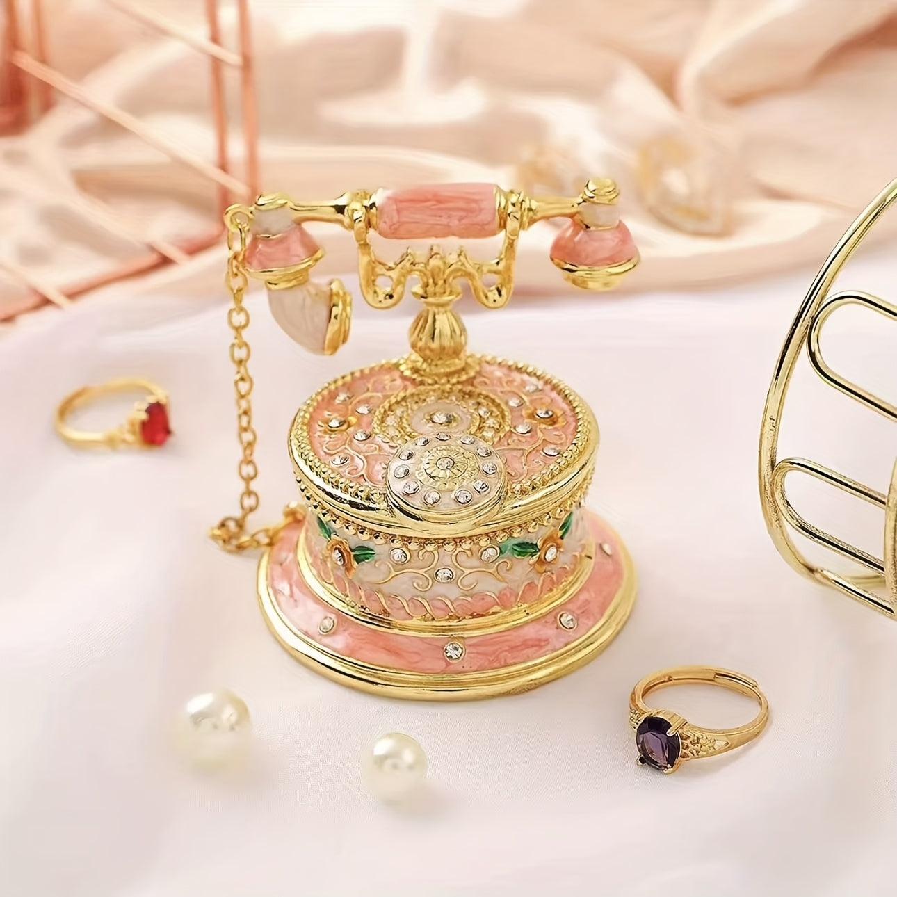 Elegant oval storage box crafted from zinc alloy with vintage charm. Perfect for safeguarding jewelry, rings, and treasured keepsakes. Snap closure keeps contents secure while the decorative design complements any room. An ideal gift for weddings, birthdays, and special occasions—or a timeless addition to your own home décor.