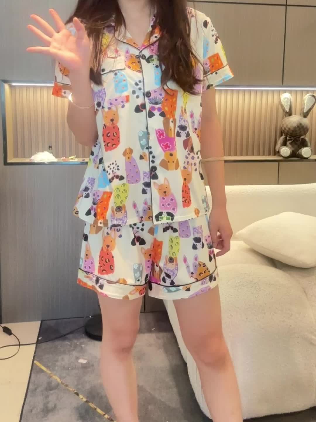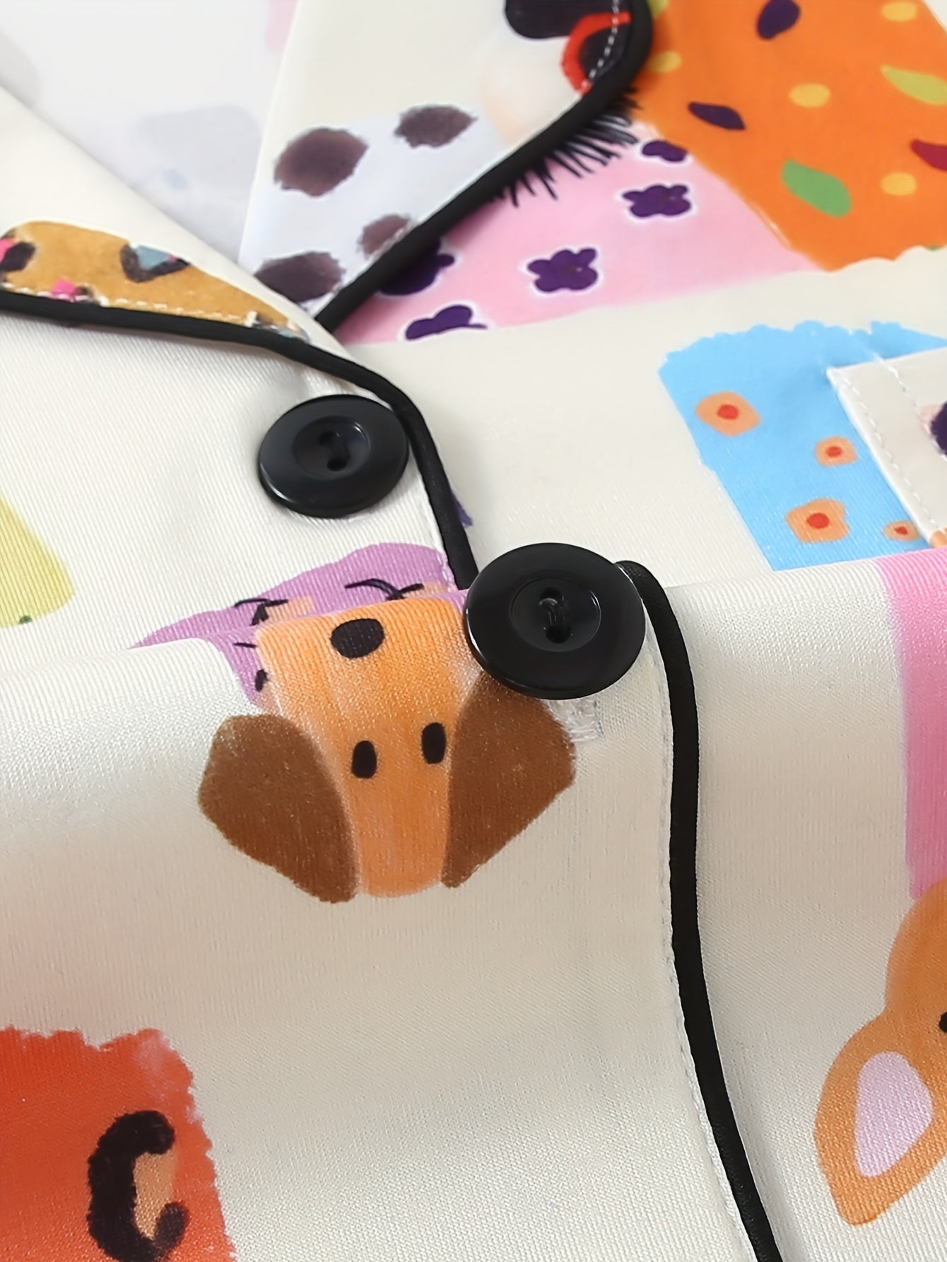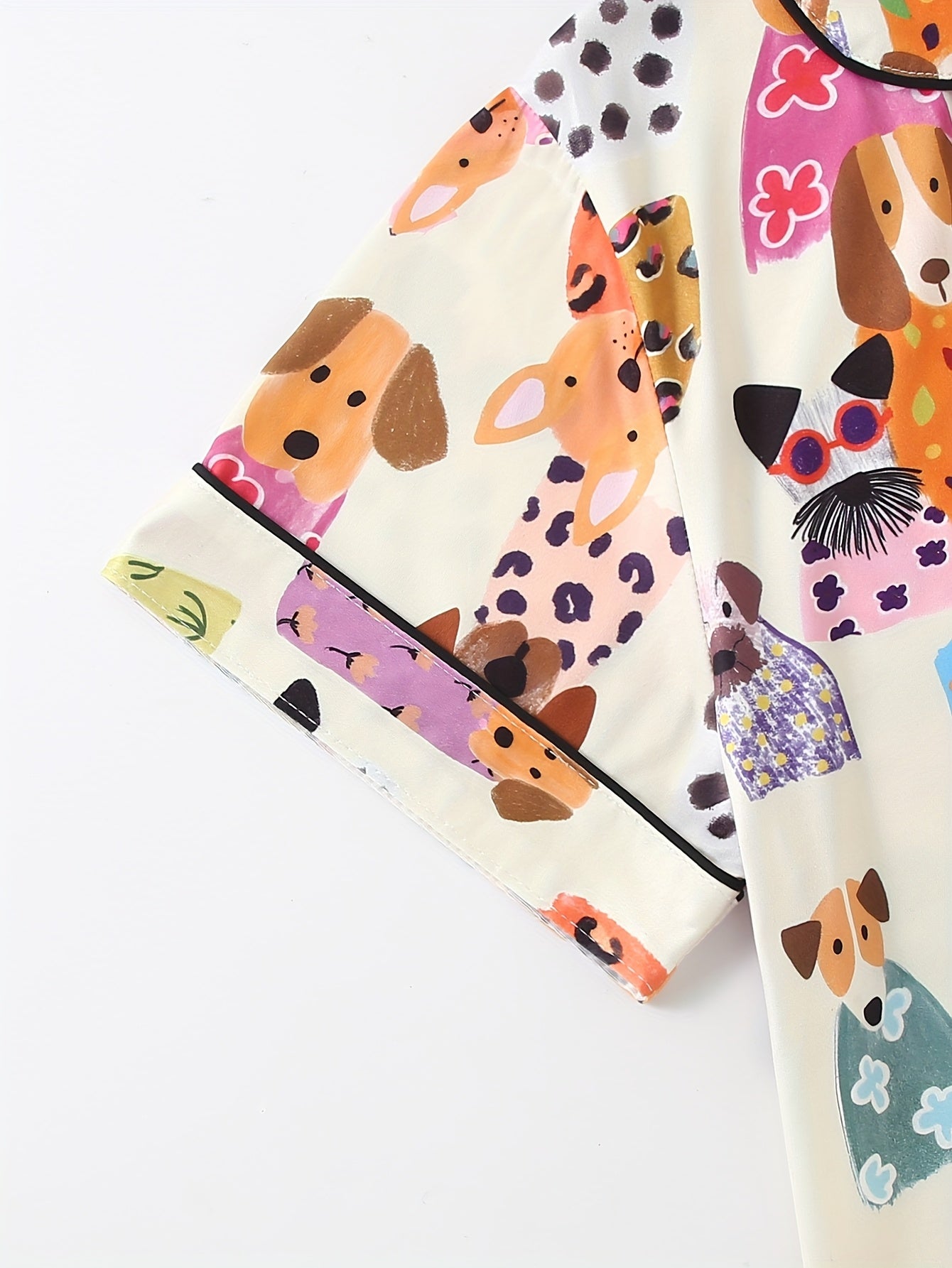 Summer Cool Short Sleeve 2pcs Set, Women's Pajama Set Slip into comfort with this playful two-piece pajama set featuring a charming cartoon dog pattern. The collared, button-front design pairs perfectly with relaxed shorts for effortless style day or night. Crafted from breathable fabric, it's ideal for warm weather while remaining...